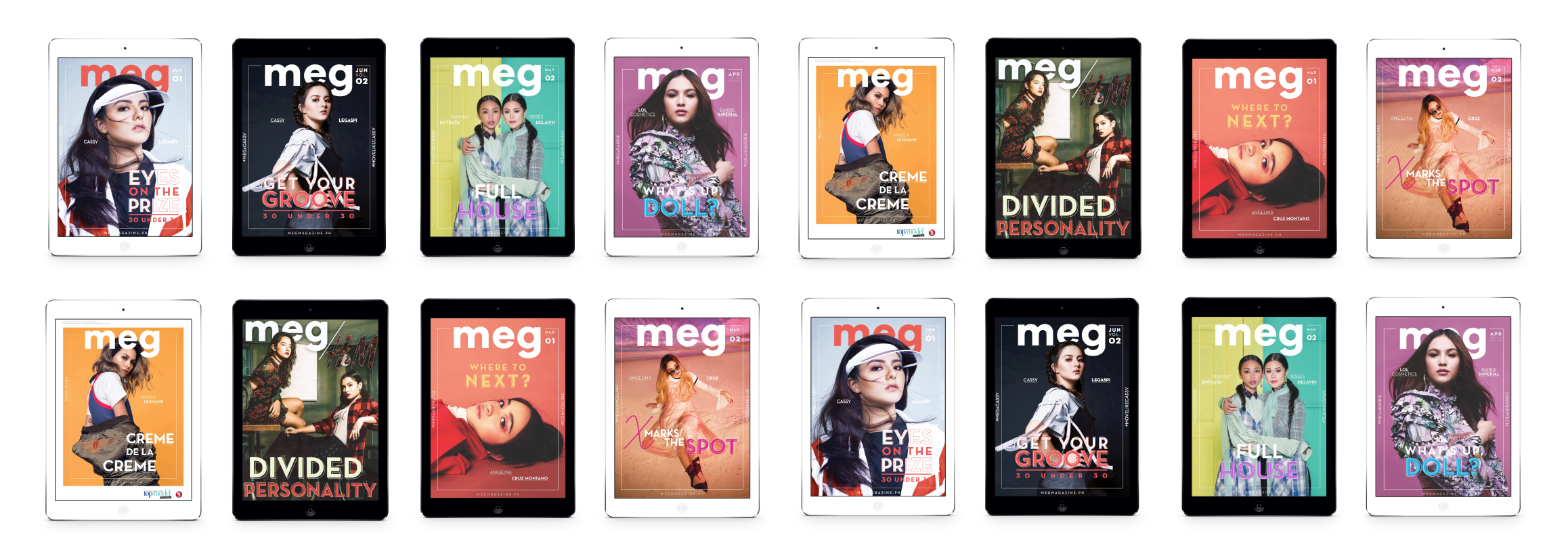 The images above highlight monthly issues I contributed to. Property of One Mega Group Inc. For portfolio purposes only.